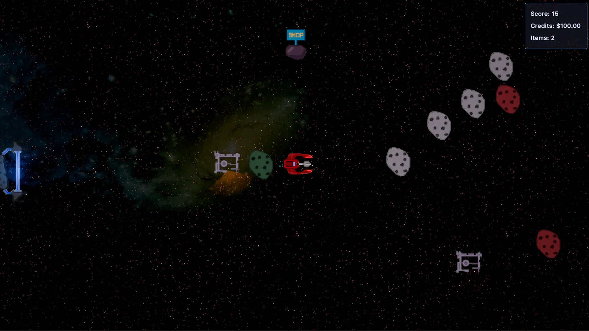 - Right now the area is a small square. I would like to add a few different background based biomes that could be explored with the right upgrades like nebulae, moons, asteroids, ect..
